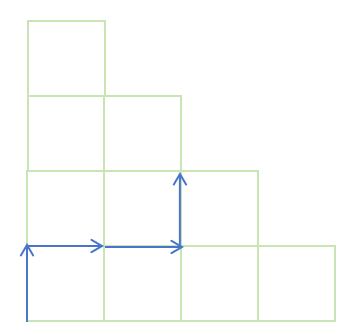 对于一种颜色,在图上染色的轮廓应为左上部分染而右下不染,而每种方案正好对应一条从左下角点出发到达对角线的右上顶点的路径。